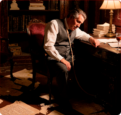 Em uma noite de tempestade, o Conde Blackthorn é encontrado morto na biblioteca trancada por dentro. Um tiro no tórax, um cálice com odor de amêndoas e suspeitos cheios de segredos. Você consegue solucionar este caso?